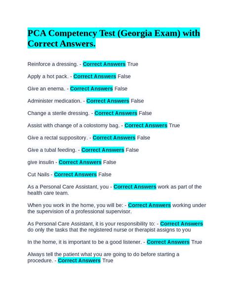 Read Online Personal Care Assistant Pca Competency Test Answer Paperback